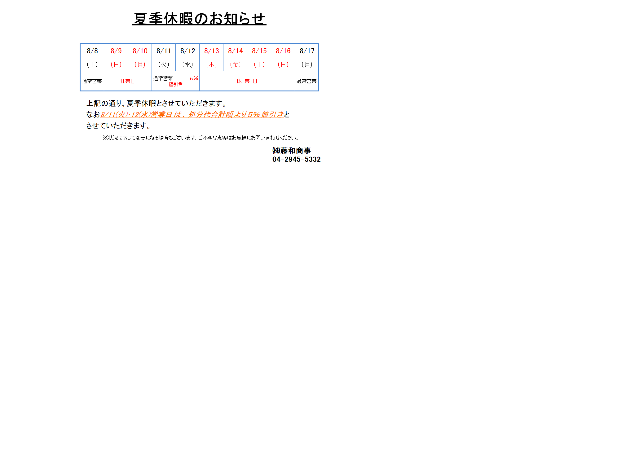 令和元年9月1日のお取引より改定させて頂きたく、謹んでここにお願い申し上げます。